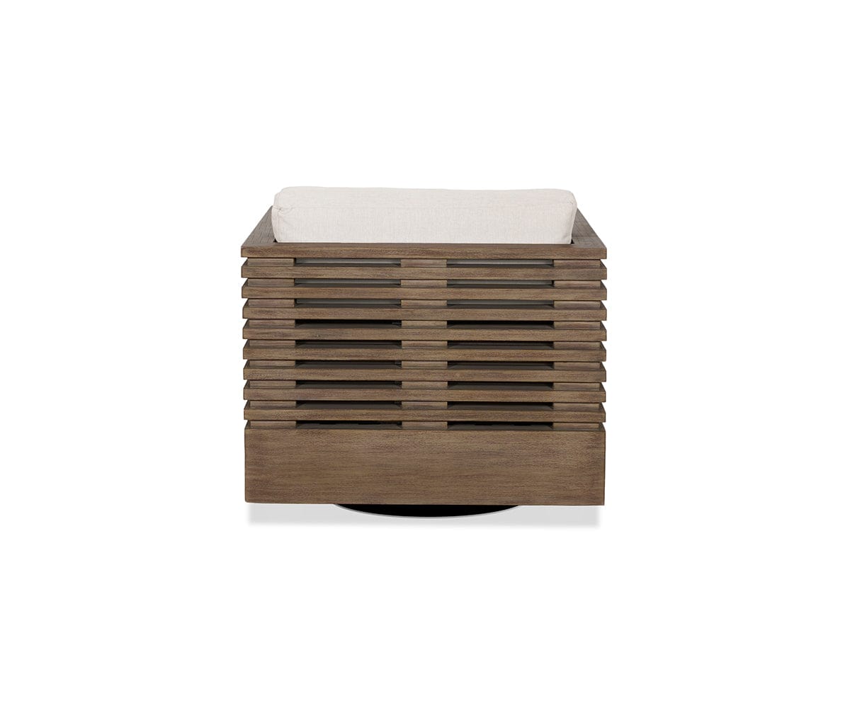 Une structure en lattes d'eucalyptus et des coussins moelleux et amovibles en oléfine créent un cadre élégant pour la chaise pivotante d'extérieur Farren, tout en offrant une résistance à l'eau et aux UV pour une durabilité en toutes saisons. Associez-la aux autres modèles de la collection Farren Outdoor pour une allure de terrasse exceptionnelle.