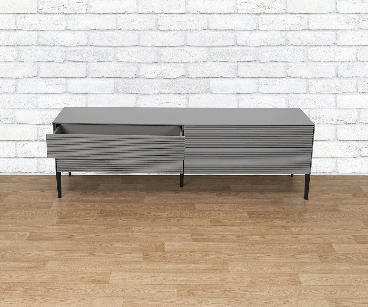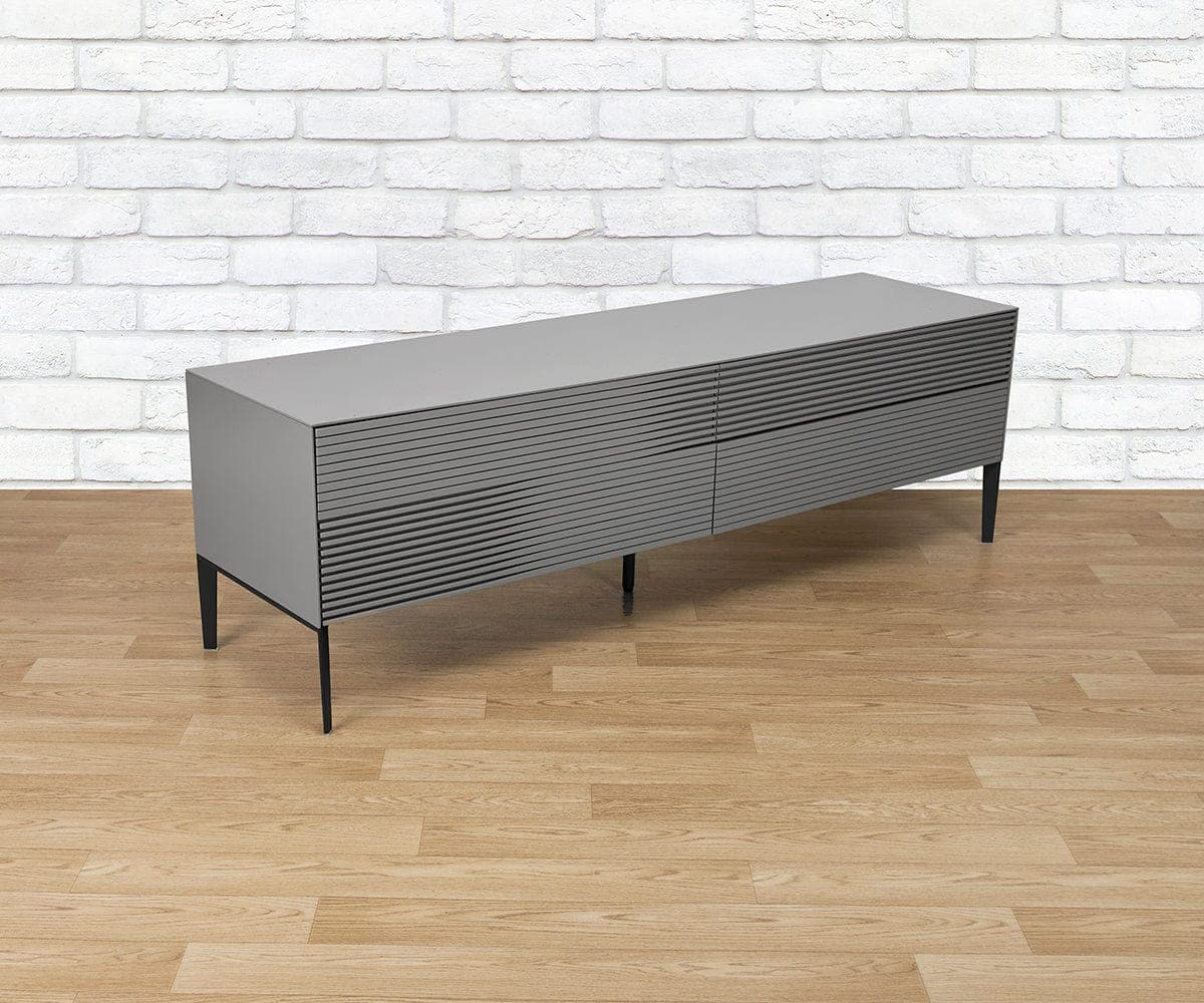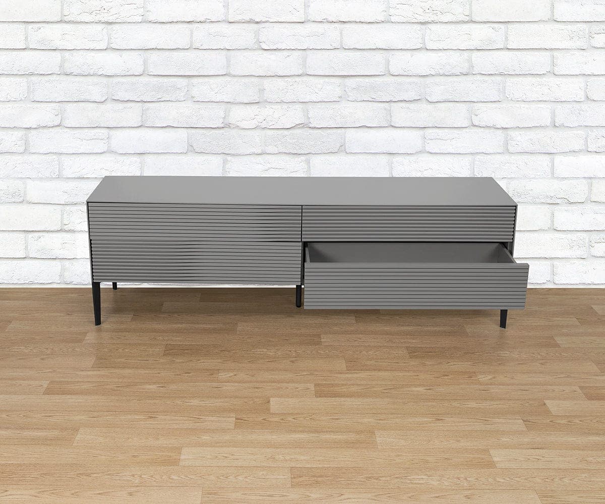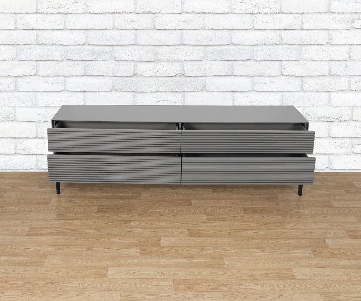Le meuble multimédia contemporain Franco apporte une touche d'élégance et de fonctionnalité à votre espace. Laqué brillant, il est orné de lignes horizontales qui soulignent sa finesse et son design moderne. Doté d'un grand espace de rangement grâce à ses quatre tiroirs à mécanisme à pression, ce meuble multimédia de haute qualité vous permettra de ranger tous vos accessoires multimédias avec style.