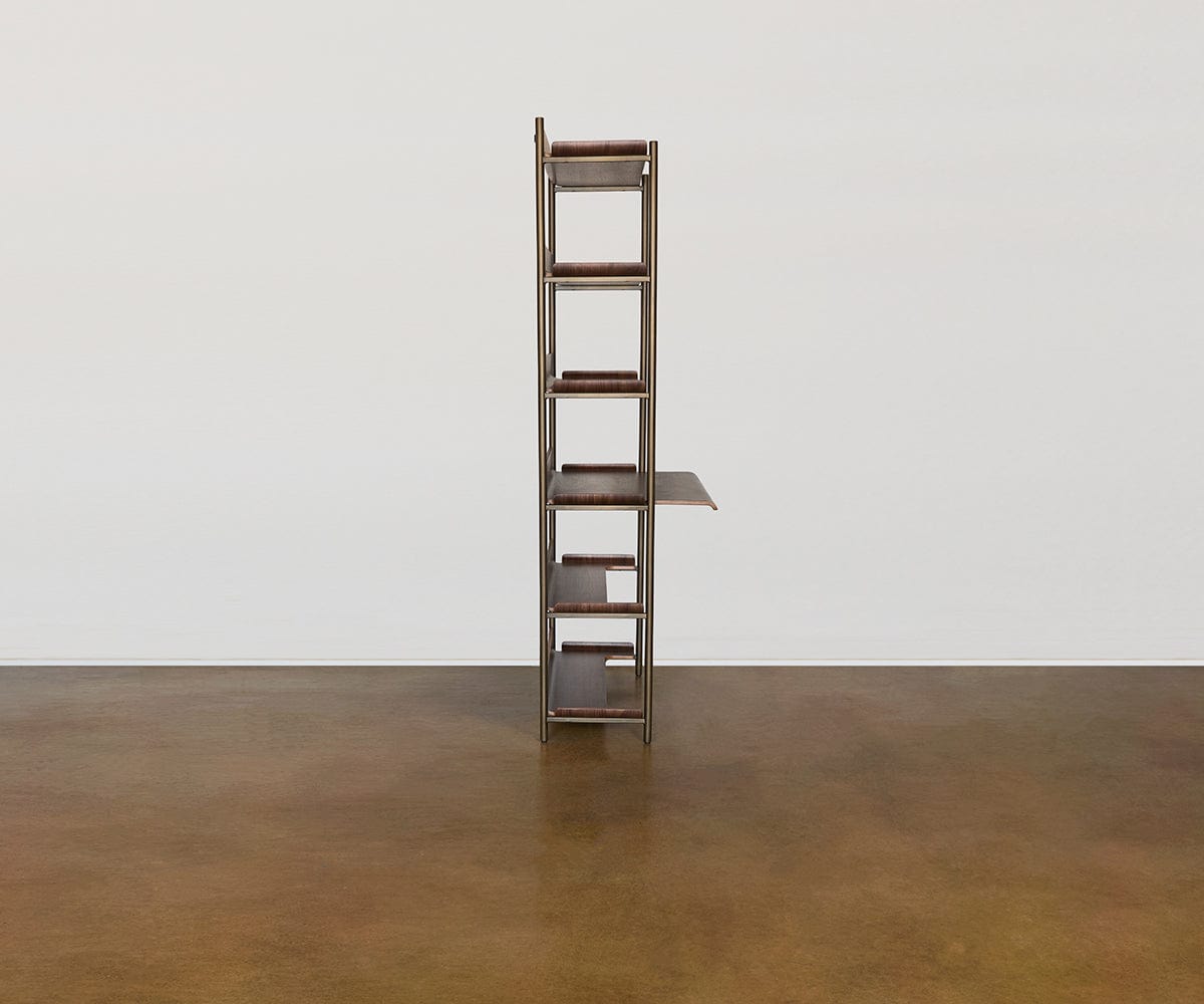 Pratiques et très polyvalentes, les étagères Freya avec bureau sont le multitâche ultime, combinant placage de noyer et métal noir pour un look moderne qui complète n'importe quel style de décoration.
