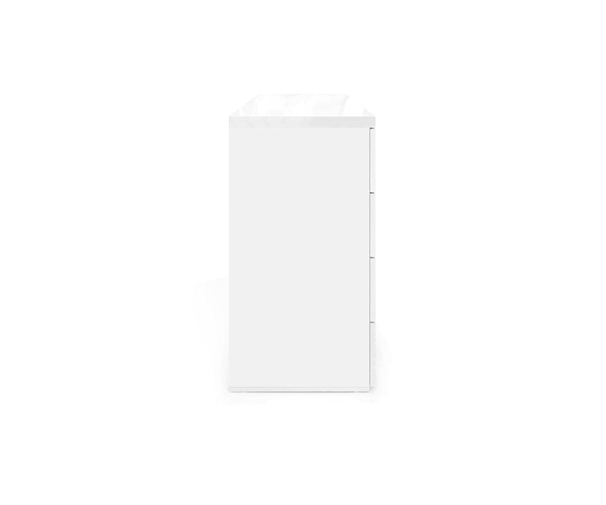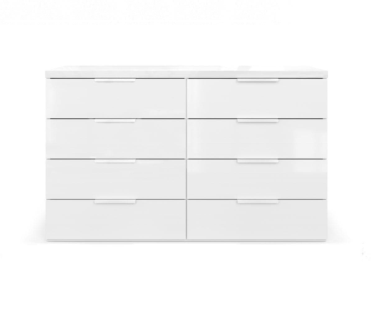 Le motif blanc de la commode double Knox apporte une touche contemporaine et élégante à votre chambre. Fabriquée en Italie et dotée d'une finition brillante éclatante, cette commode est dotée de huit tiroirs pour un grand espace de rangement et la possibilité de trier et d'organiser vos essentiels. Des poignées minimalistes en métal blanc complètent son style épuré. Associez-la aux autres meubles de la collection Knox pour parfaire le style contemporain de votre intérieur. Assemblage requis.