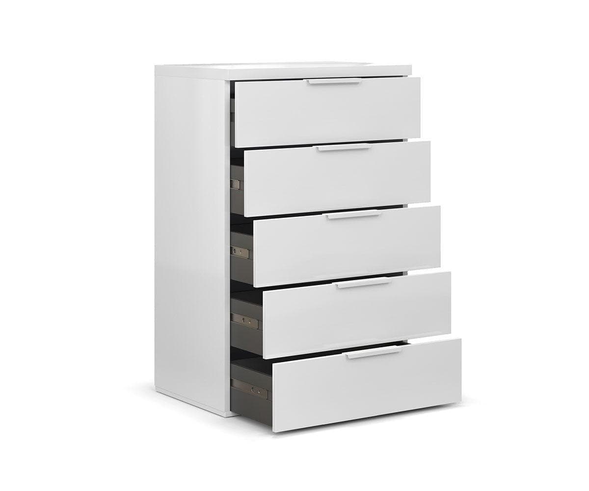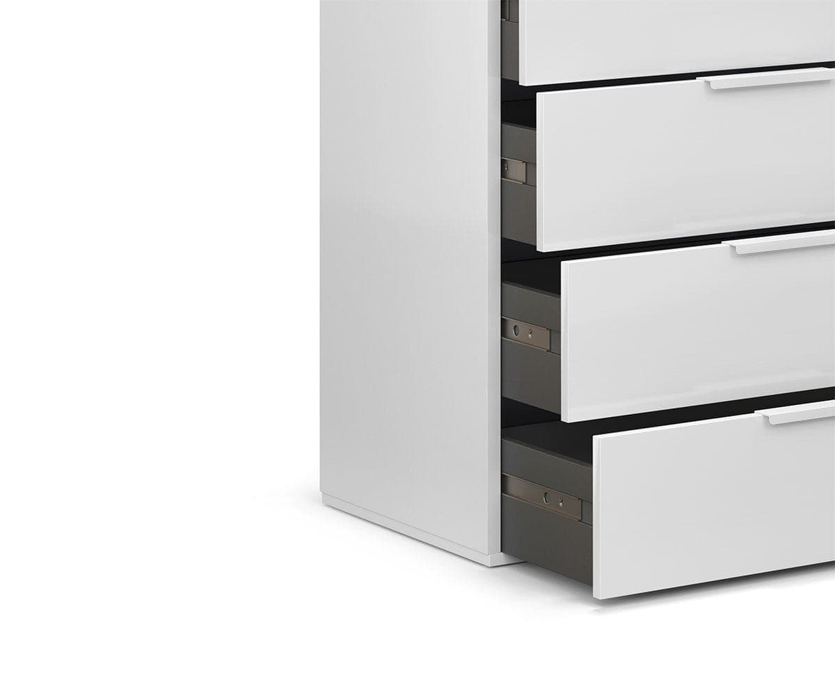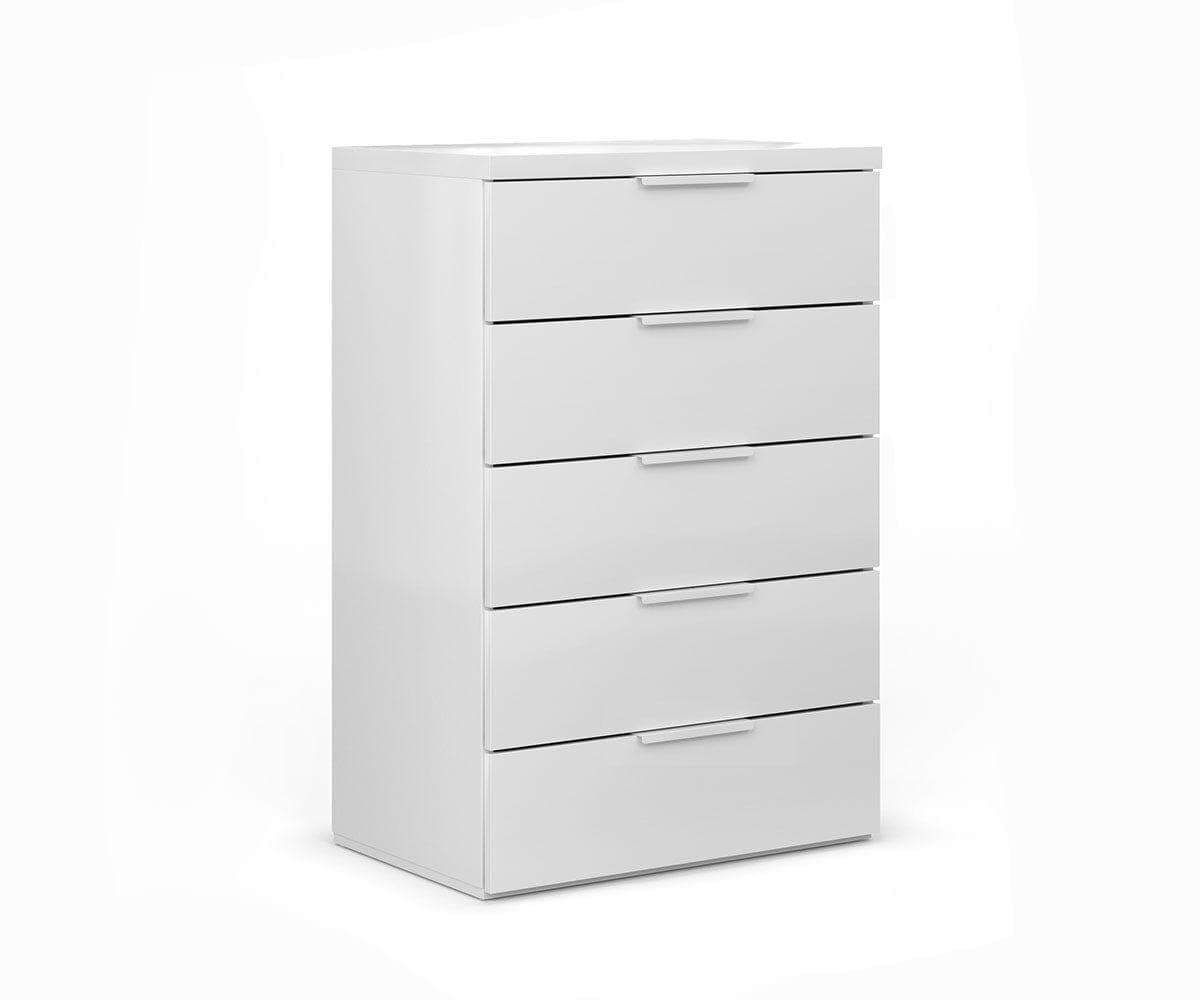 La finition brillante et éclatante de la commode haute Knox apporte un style contemporain et élégant à votre chambre. Fabriquée en Italie et ornée d'un motif entièrement blanc, cette commode est dotée de poignées minimalistes en métal blanc qui complètent son style épuré. Ses cinq tiroirs offrent un vaste espace de rangement et permettent de trier et d'organiser vos essentiels de chambre. Associez-la aux autres meubles de la collection Knox pour parfaire le style contemporain de votre intérieur. Assemblage requis.