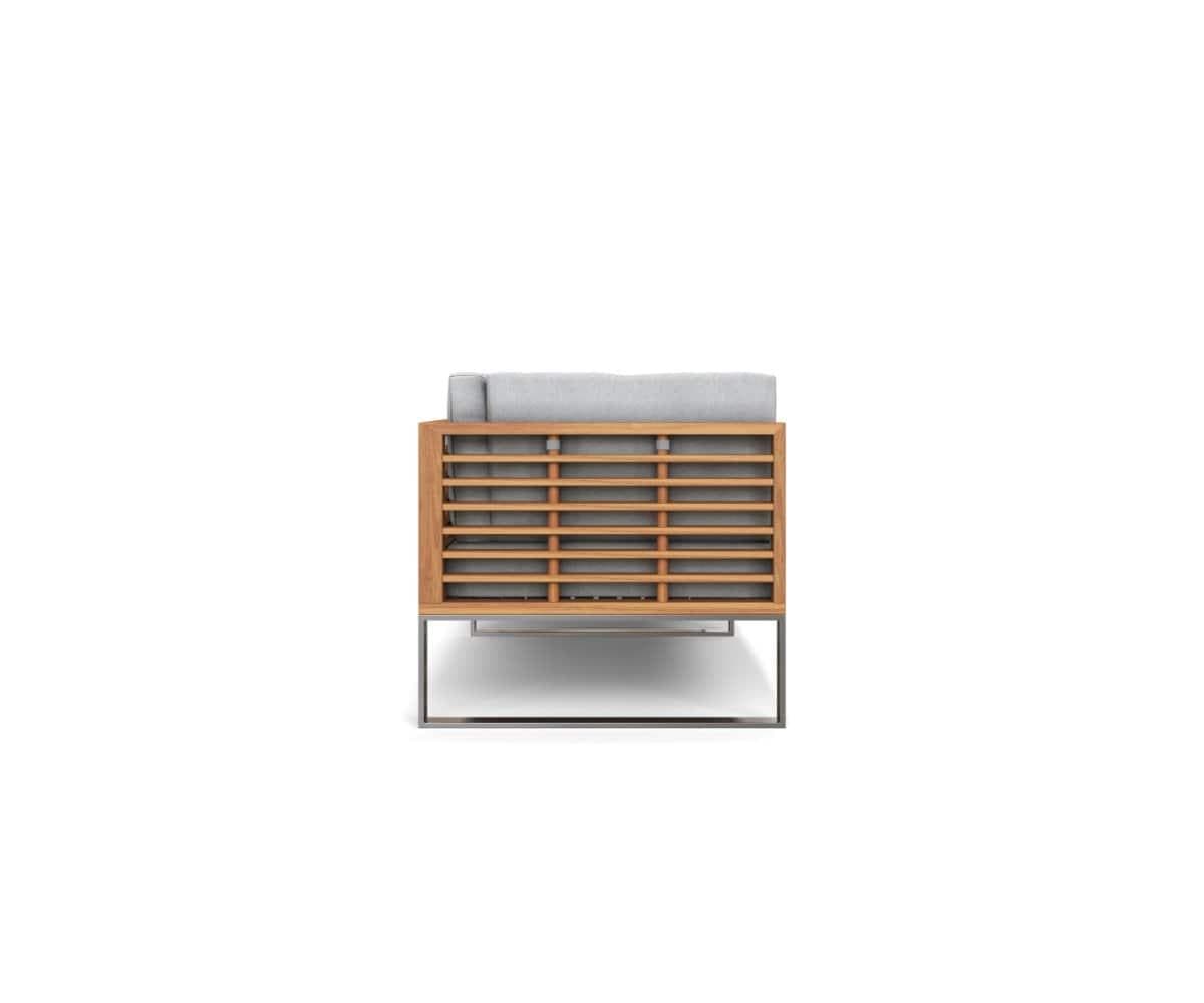 Le teck présente des variations d'aspect naturelles, chaque arbre étant différent. Le teck est très durable et résiste naturellement à la pourriture et à la décomposition. Laissé à l'extérieur pendant un certain temps, le teck acquiert une patine argentée ; cette patine est purement esthétique et n'a aucun rapport avec l'intégrité de votre pièce.